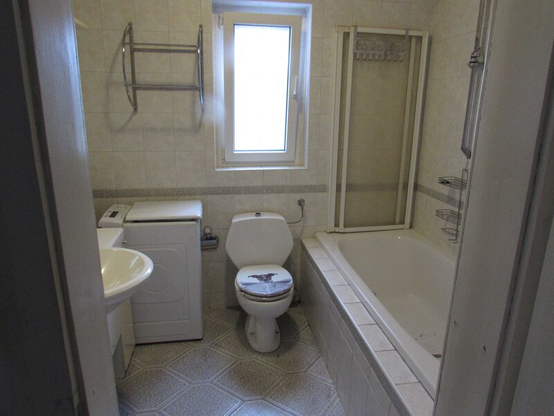 Die Wohnung im Obergeschoss des Hauses verfügt über: 1 Flur, 1 Duschbad, 1 Küche teilweise möbliert, 1 Wannenbad, 1 Dachterrasse, 1 Schlafzimmer, 1 Kinderzimmer sowie 1 Wohnzimmer.
